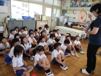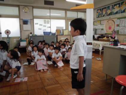 身体測定をしました。4月にはかったときより、みんな大きくなりましたね。保険の先生から、熱中症についての話も聞きました。これから、気をつけて水分をとったり休憩したりしましょうね。