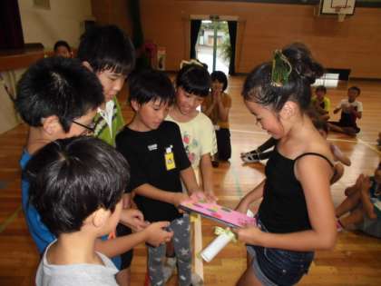 今日で転校する友達のお別れ会を4年生のクラスといっしょにしました。いっしょにドッジボールをしたり、踊ったりしました。お手紙をもらいました。元気で!また、会いましょう!