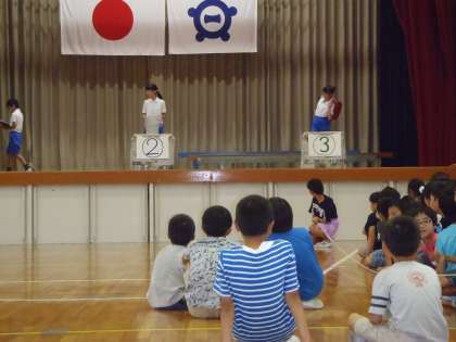 ペア学年で、「わたしはだれでしょう」クイズをしました。ヒントをもとにして、正しい箱のところへ移動しました。ペアで仲良く相談することができました。