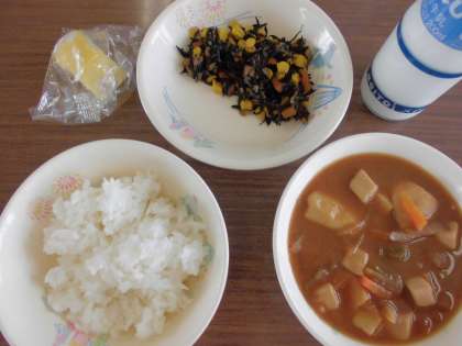 ごはん、牛乳、豚汁、ひじきのいため煮、冷凍パイン
