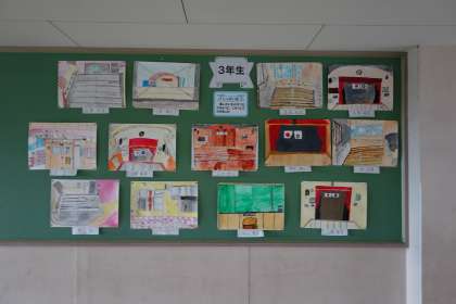 廊下や渡りに児童の作品が掲示してあります。