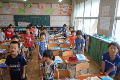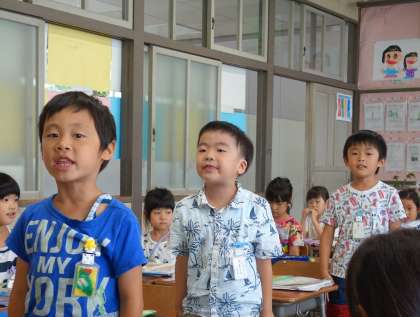 国語の時間、「おむすびころりん」のお話の全文暗唱に取り組みました。多くの児童が、教科書を見ないで、全文を暗唱することができました。