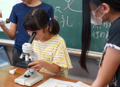 理科の時間、顕微鏡でホウセンカの観察をしました。