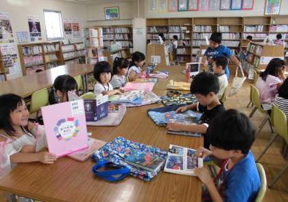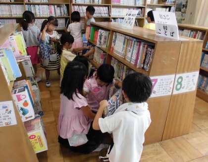 夏休み用の本を借りました。どの本にしようか、楽しそうに選んでいました。本を借りると、早速読んでいる子もいました。