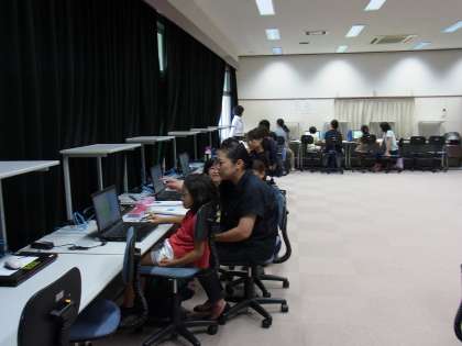 パソコン室では、親子で協力しながら、パソコンの操作に取り組んでいました。