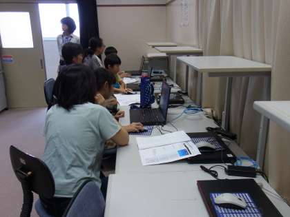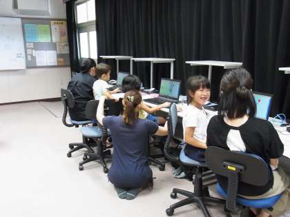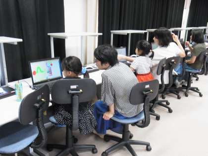 パソコン室では、親子で協力しながら、パソコンの操作に取り組んでいました。