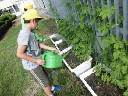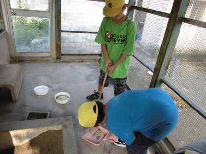 暑い中、一生懸命、掃除や水やりをしてくれました。毎日しっかりと掃除をしてくれるので、うさぎ小屋もきれいです。