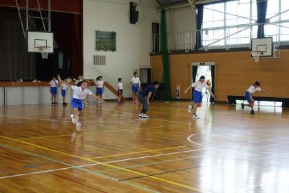 ミニバスケットボール部員は、大会に向けて今日も頑張っています。