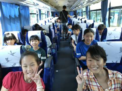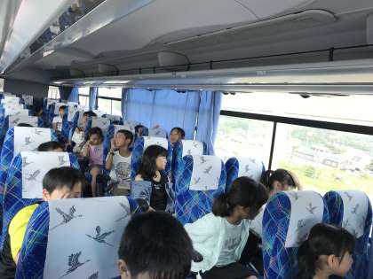 西広瀬PAを出発しました。 みんな元気いっぱい! バスレクを楽しんでいます。