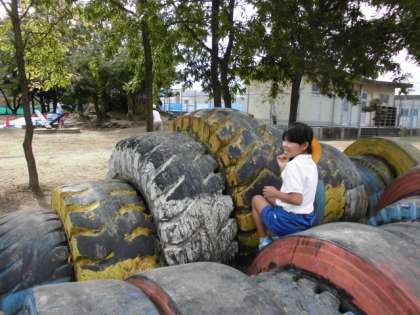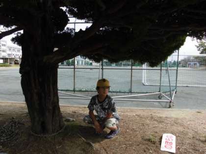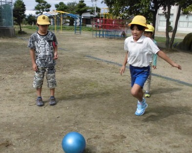 外で遊びました。「缶けり」をボールを使ってしました。上手にかくれたり、かくれた友達をいっしょうけんめい探したり、楽しく遊べました。