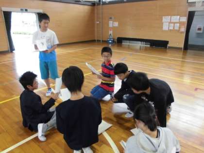 今日は学習発表会のセリフも決まったので、各グループに分かれてセリフ合わせを行いました。お客様により気持ちや感情が伝わるように、自分たちで動きや声のトーン、言い方などを工夫しよう!と伝えました。すると、さすが6年生。自分たちでいろいろな動きを考え、試し、また少し変えて…とたくさん工夫をしていました。
