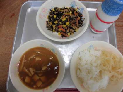 ごはん、牛乳、豚汁、ひじきのいため煮、たくあん