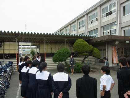 千秋中学校の生徒のみなさんに、千秋小へ来ていただき、あいさつを呼びかけていただきました。