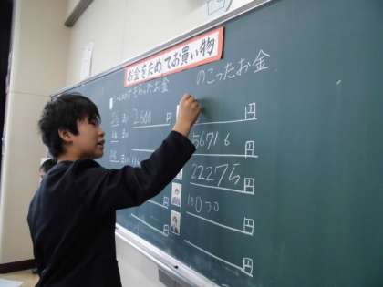 お金の学習をしました。がんばったことがあるともらえるシールを数えて、お金にかえました。100倍するといくつになるかの計算をしました。