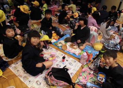 色々遊べる場所があって、みんな友達と楽しく遊んでいました。おいしいお弁当を見て、思わずにっこり。ご準備ありがとうございました。