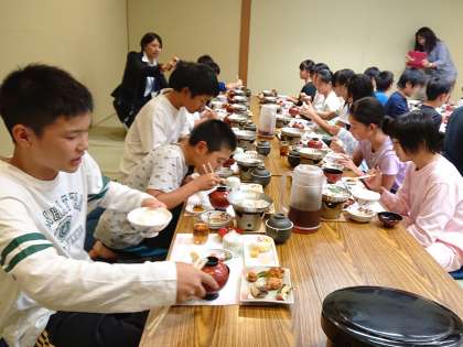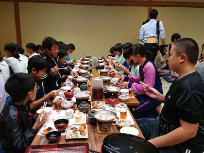 宿で夕食をいただきました。みんな一緒に食べるご飯はとてもおいしかったですね!