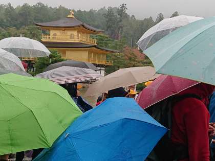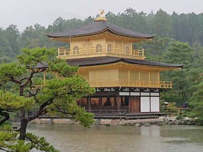 鹿苑寺金閣を見学しました。雨と観光客の多さで、一目見るのも大変でしたが、金箔が光り輝いていました。京都北山の公家と武家の融合した文化に触れることができました!