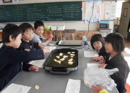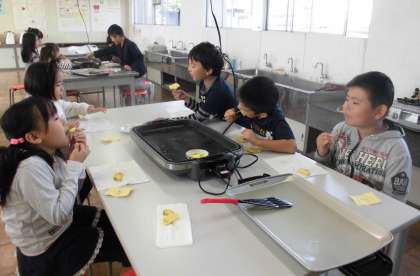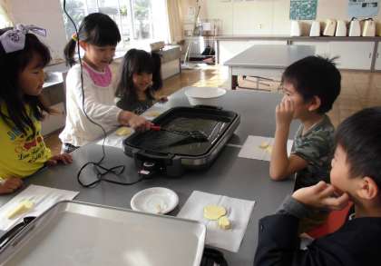 ホットプレートでおいもを焼いて食べました。焼いたばかりのおいもは、ほくほくしておいしかったです。