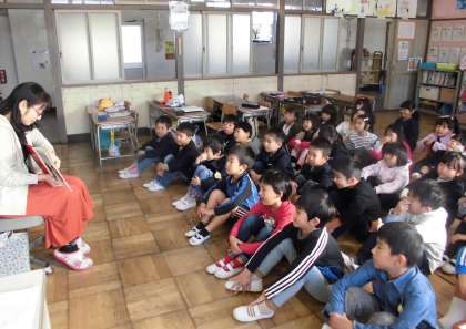 読み聞かせをしていただきました。みんな一生懸命、話を聞いていました。