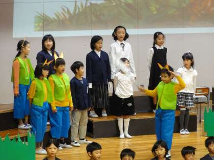 今日は、児童鑑賞日でした。台詞や役柄が自分のものになってきたようです。緊張しながらも、精一杯演じたり、歌ったりすることができました。