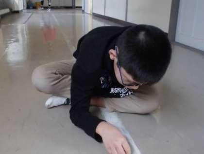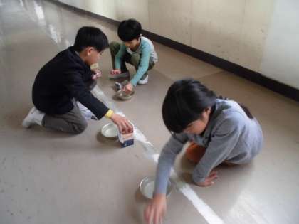 給食が終わったら、歯磨き。そして、掃除。みんなしっかりできます。