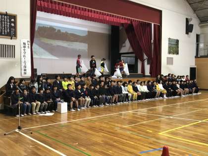4年生は総合的な学習の時間で学んだ環境について、劇で発表しました。