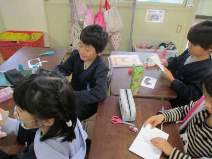 今日は国語の文章に載っているしかけカードを実際に作りました。