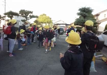 あいさつ運動の取り組みで、門に立って、登校してくる子たちに挨拶をしました。手話を使って、元気に挨拶をしていました。
