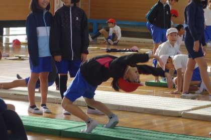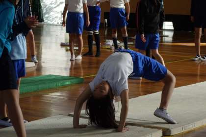屋運では、5年生が体育の時間にマット運動に取り組みました。