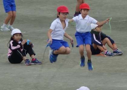 体育の時間、縄跳びに挑戦しました。