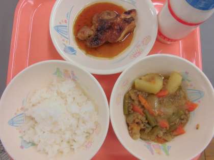 ごはん、牛乳、じゃがいものカレー煮、てりどり