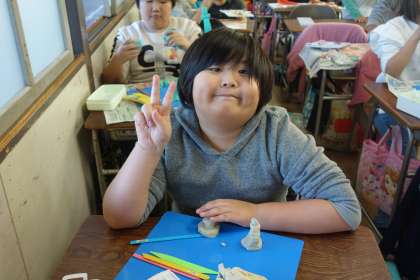 図工の時間、お話のえや粘土の作品づくりに取り組みました。