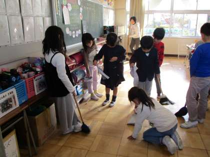 掃除の時間の様子です。自分の分担を意識して、丁寧に掃除に取り組んでいます。終わった後は、いつもピカピカで気持ちがいいですね。