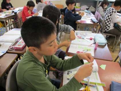 切り方によっては、三角形を切っているのに、四角形がうまれるなど、発見が多い時間になりました。