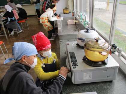 今日は、サンタさんからの素敵なクリスマスプレゼントのお話で、ワクワクしながらお話を聞いていました。明日、中学校交流で、劇を披露します。お休みの子がいましたが、その分みんなで一生懸命がんばりました。5年生は「ご飯とみそ汁」の調理実習を行いました。ご飯の火の番を友達と協力して、和やかに調理実習ができました。