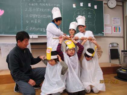 千秋小学校の出し物は『おいしいうどんを作りいましょう』でした。