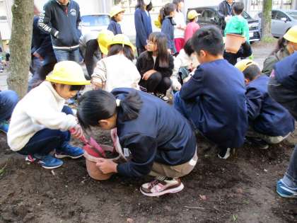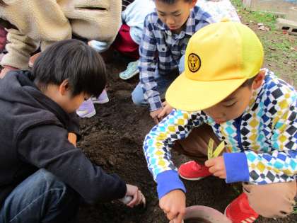 ペアと協力して、土を入れたり、肥料をまいたりしました。これからお世話をして、立派なパンジーに育てていきます。
