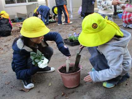 4年生に教えてもらいながら、パンジーを植えることができました。