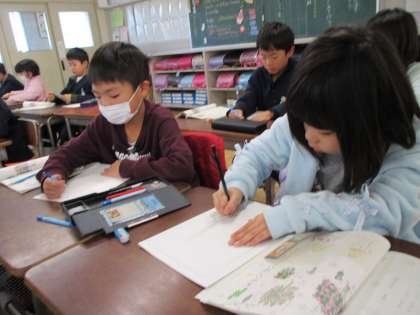 今日は冬に関する言葉をみつけ、そのあとカードにまとめました。あと2週間ほどで冬休みですね。手洗い、うがいをして風邪に負けないように気をつけましょう。