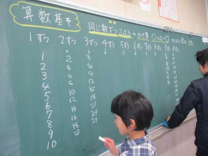 12月9日 九九の復習 あすなろ 公開日 2019/12/09 更新日 2019/12/09 あすなろ 2年生の算数と言えば、九九を思い出す方も多いと思います。 今日は九九の決まりを自分たちで見つける勉強と、九九を一緒にリズミカルに唱える練習をしました。丸を付けながら九九を言い合うのがとても楽しかったようで、ずっと笑顔で勉強をしていました。 毎日こんな笑顔で勉強できるといいなあと思いました。