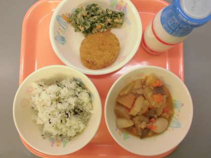 12月10日(火)今日の給食 公開日 2019/12/10 更新日 2019/12/10 本日の給食 【本日の献立】 わかめごはん、牛乳、関東煮、れんこんサンドフライ、ほうれんそうのツナ和え 【ひと口メモ】 今日の関東煮にはこんにゃくが入っています。こんにゃくが庶民に食べられるようになったのは、江戸時代になってからといわれています。こんにゃくは、食物繊維が豊富な食品で体に不必要なものを外に出してくれる働きから「おなかの砂おろし」や「胃のほうき」などとも呼ばれています。