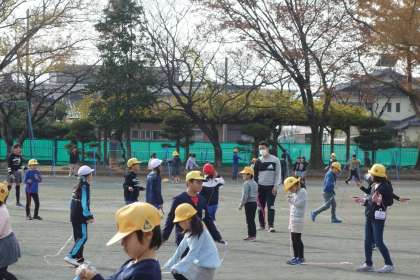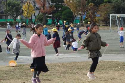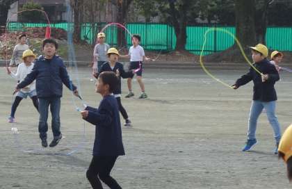 千秋っ子は、リズムに合わせて、縄跳びの練習をしていました。