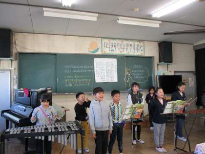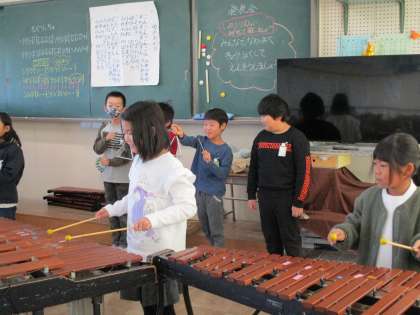 音楽の時間に学習してきた「雪のおどり」の合奏の発表会をしました。みんなと心を合わせて合奏することを楽しんでいる様子でした。