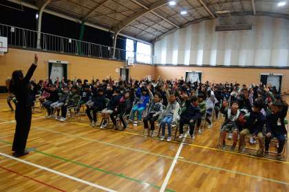 NTTドコモのみなさんにお越しいただき、ケータイ・スマホ安全教室を行いました。
