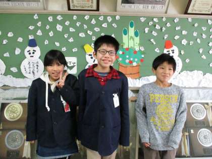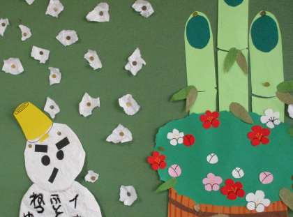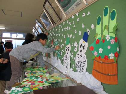 クリスマスツリーやリースが飾ってあった掲示板を、門松や鏡餅に貼りなおしました。いい年が来ますように。
