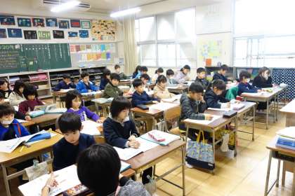 始業式の後、各学級では、宿題の答え会わせなどをしました。