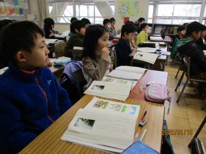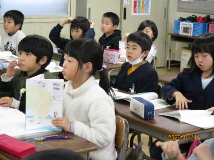 国語「ようすをあらわすことば」の勉強をしています。絵の様子を、文章で丁寧に書きました。友達と相談しながら、楽しく学ぶことができました。
