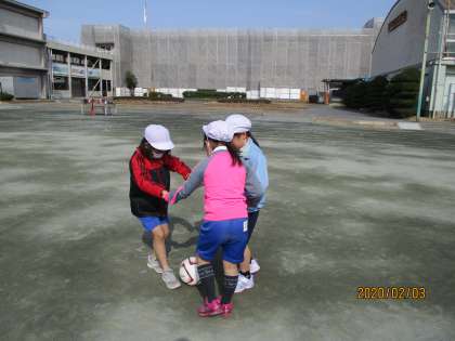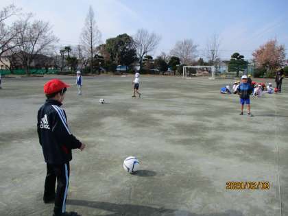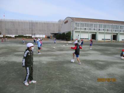 今日は体育の時間にボールけりをしました。ボールを相手に向かって上手に蹴ることができました。今日は欠席が多かったです。風邪の予防をしっかりしましょうね。