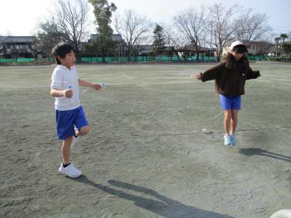 体育では100回なわとびとサッカー、家庭科では裁縫。