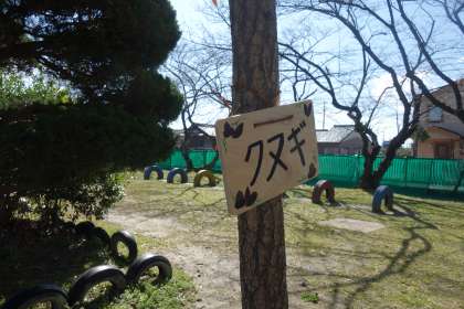 3月11日 卒業制作樹木の名札 取り付け 6年生